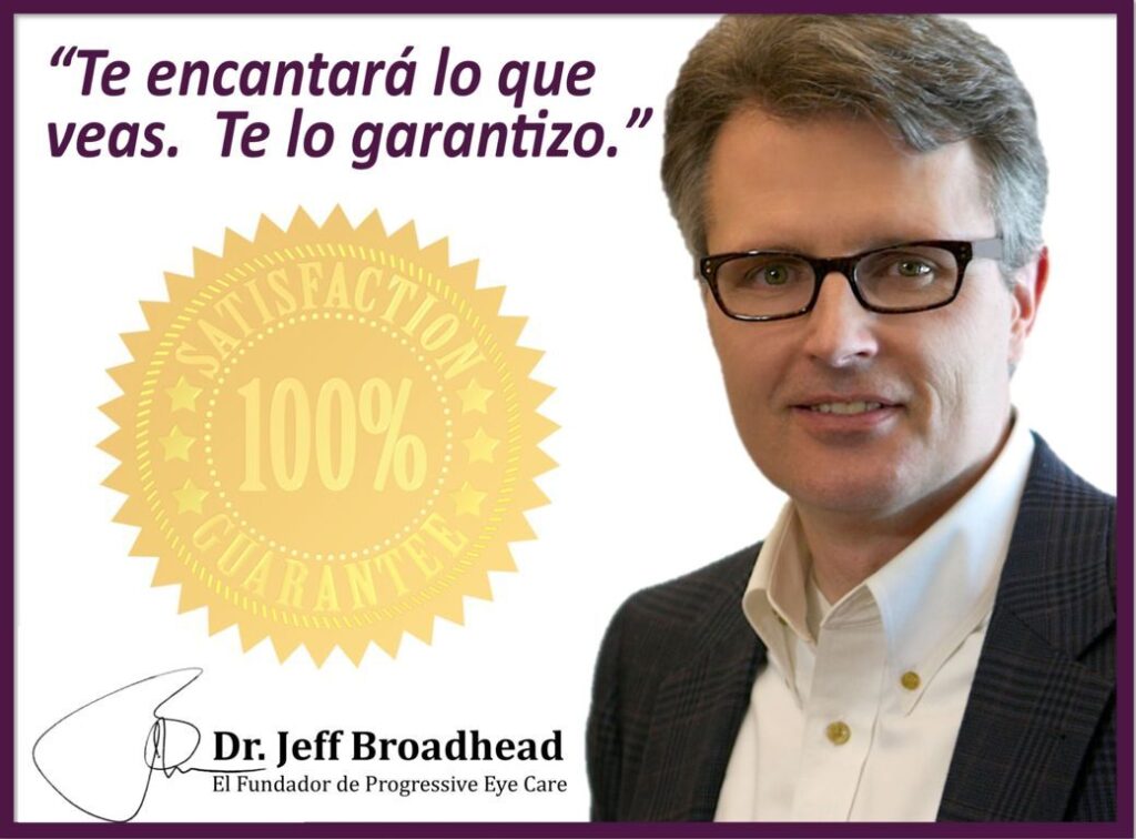 “Yo personalmente garantizo que si usted no está completamente satisfecho con anteojos comprados de Progressive Eye Care, gustosamente le reembolsaremos su dinero o seguiremos trabajando hasta que su visión sea corregida a su máximo potencial y satisfacción.” – Dr. Jeff Broadhead